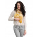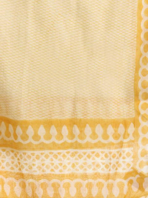 Yellow hand block printed stole with hemmed edges with beaded detail and patterned borders