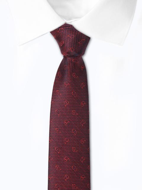 Maroon two tone dotted tie with mango patterning, has a bluish sheen