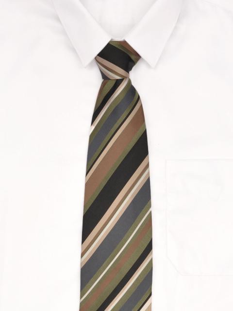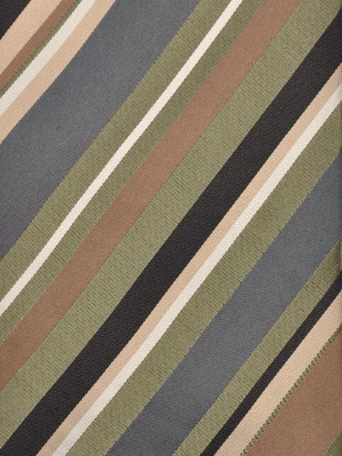 With a combination of diagonal bands in various shades of greens and browns with highlights of champagne gold, this tie from Reid and Taylor is a perfect match for slim Fit dress shirts - from classic white to black and beige.
