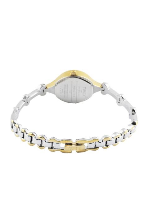 Strap style: Silver and gold-toned bracelet-style strap with white stones, securednbsp;with anbsp;fold-over claspWater-resistantComes in a signature Timex caseWarranty: 1 year against manufacturing defectsnbsp;from the date of purchase