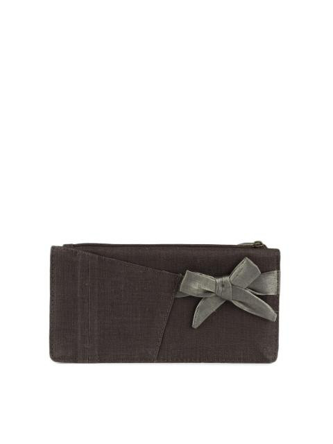 Once opened six credit card slots, one photo id card holder and two slip pockets on one side and seven credit card slots with two slip pockets on the other