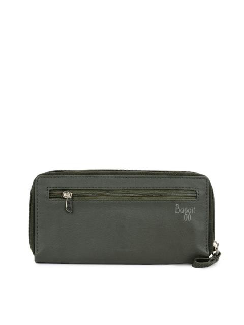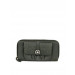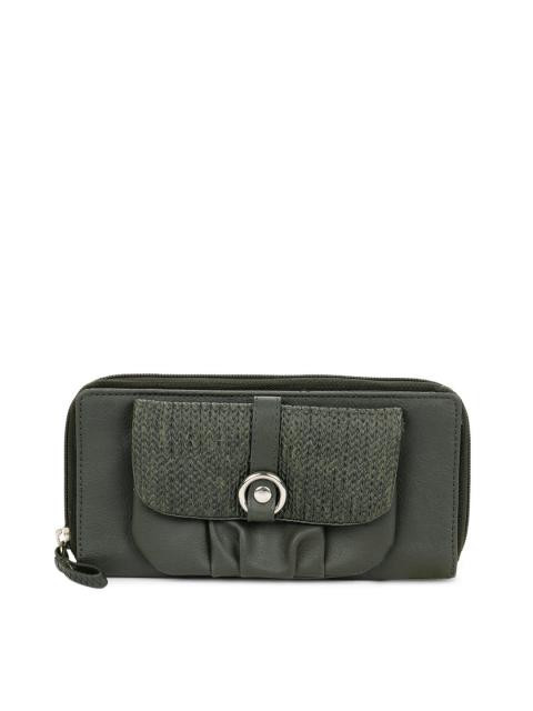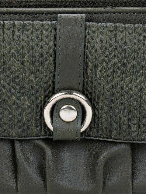 Olive green single fold wallet crafted from synthetic leather and knitted trims