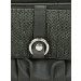 A pintucked pouch on the front with a flap and a strap and loop detailing securing a magnetic closure on the pouch