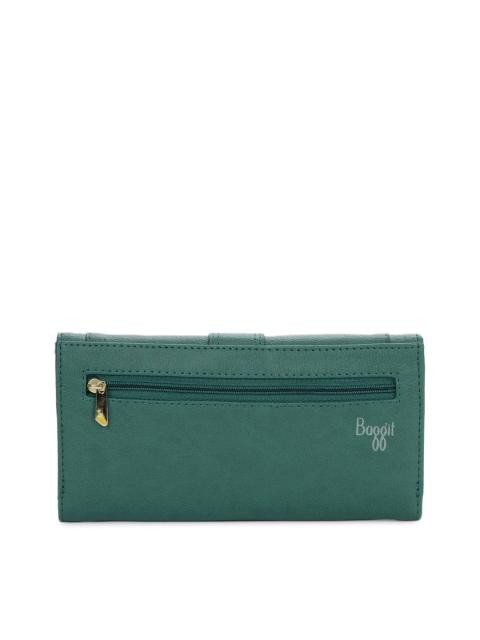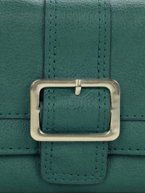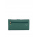 Teal wallet with single fold and a flap crafted from synthetic leather