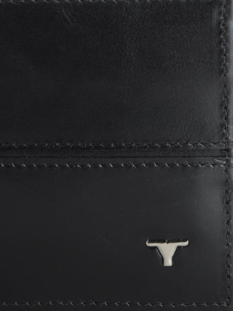 One slip pocket and a coin pocket with with buttoned flap closure on the right flap