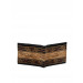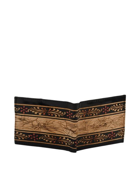 Black and beige wallet with hand tooled leather design details on the upper