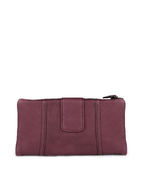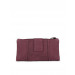 Purple wallet that has a zipped compartment, flap on the left with a buttoned closure, twelve card holders and an id card holder, flap on the right with a pocket and buttoned closure, stitch detailing and brand name on a metallic badge on the front
