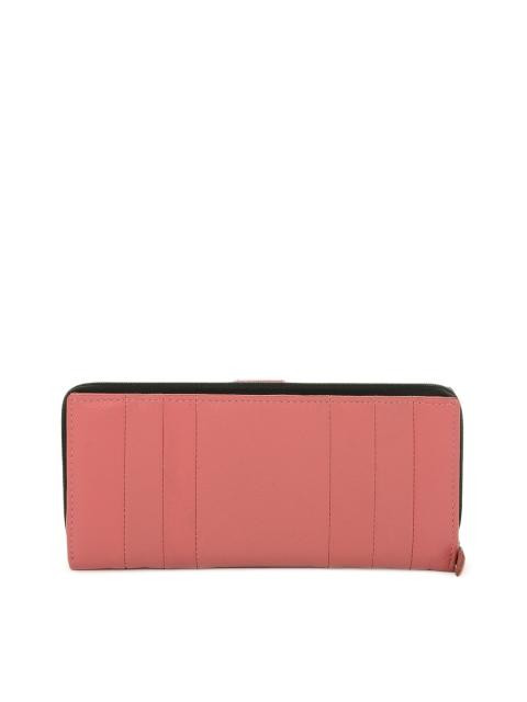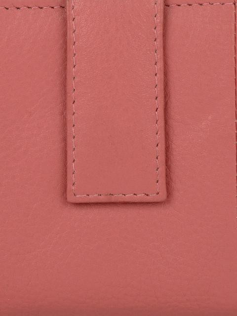 A flap at the back with one id card holder, two slip pockets and six card slots, has a press buttoned closure