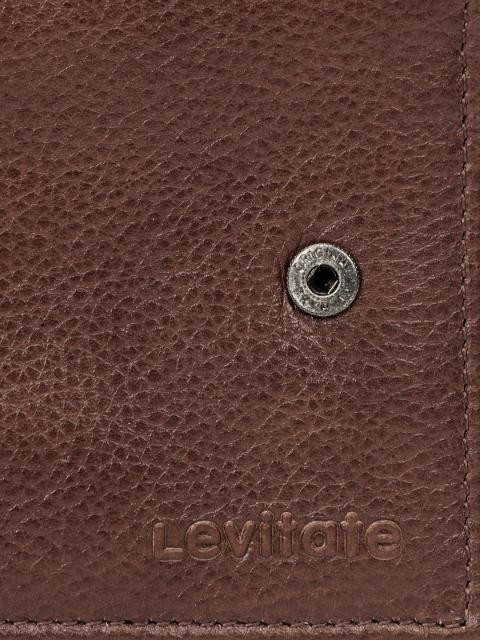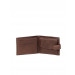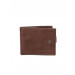 Brown, textured leather, two-fold wallet with a flap and press button closure