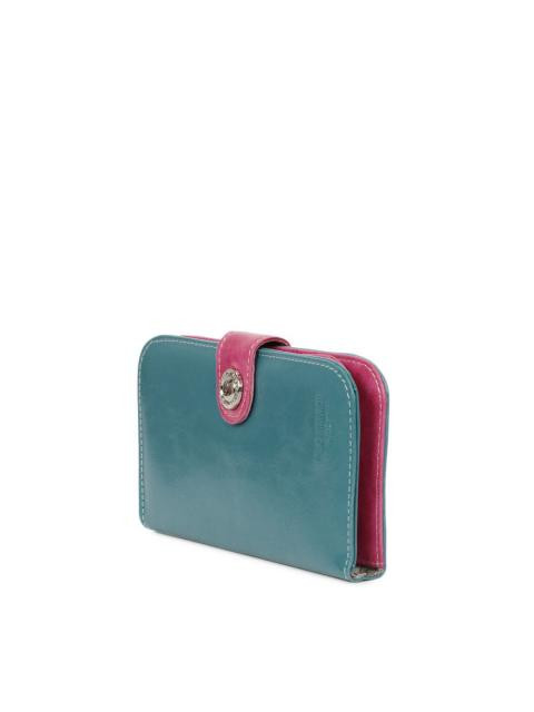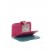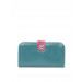 Colour block styling on this Linos Perros wallet in pale blue and cotton candy pink. Match one item in your ensemble with either of these colours to bag that colour block trend. Pink inner.