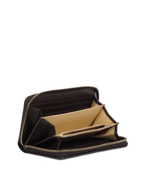 Linos Perros wallets in a rich-toned classic hue for the conservative at heart. This understated classy piece in coffee brown holds all your essentials comfortably with its many convenient compartments. Styled to Fit in your hand bag, this wallet will look good even if carried solo, like a purse.