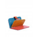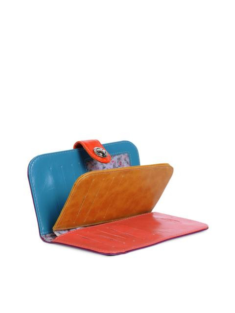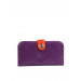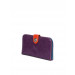 Colour block styling on this Linos Perros wallet in grape purple and sunset orange. Match one item in your ensemble with either of these colours to bag that colour block trend. Cherry red inner.