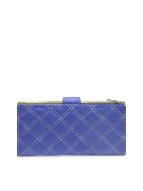 Once opened, central flap has a zippered compartment, six card holders and one slip pocket on one side with press button that can be attached to centre flap; eight card holders, one id card holder and two slip pockets on the other side