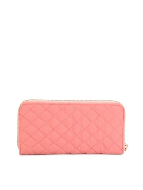 Overlay having stitched triangular patterns on zipped compartment in front and at the back