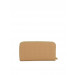 Beige wallet with a gold zip closure and perforation styling on the upper