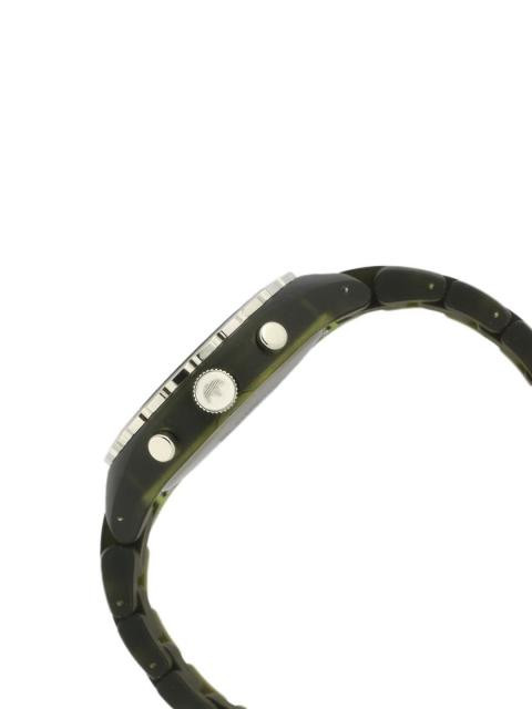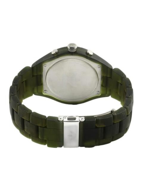 Strap style: Olive plastic strap with a butterfly clasp for comfort and style