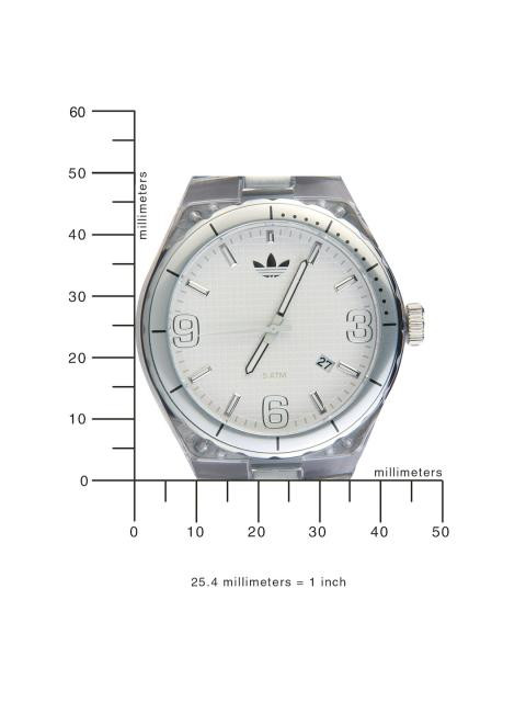 Case style: Analogue watch with a roundnbsp;case and a stainless steel back, has a fixed bezel