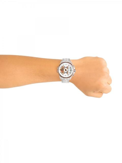 Features: Three-faced chronograph display, date and day apertures, a screw to reset the time, push-buttons to adjust the features