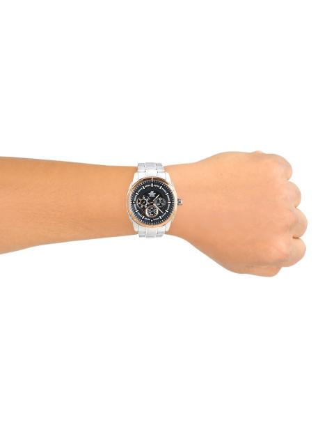 Strap style: Silver-toned stainless steel bracelet-style strap with a butterfly clasp