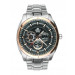 Features: A screw to reset the time, three subdials to display the day, date and hour, has alarm and timer
