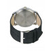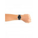 Tang clasp with a black round dial, metallic numbers and metallic hands