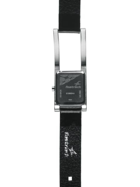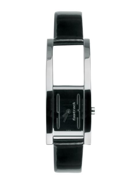 Inspired by pretty women and femininity, this fastrack watch refuses to conform, with its stylish dial. Minimalist design, rectangular face and a black synthetic leather strap to give it a modern feel backed up by a steel case for optimal performance. Wear this with trendy, casual ensembles - colour-pop tees, denims and casual sandals or shoes.