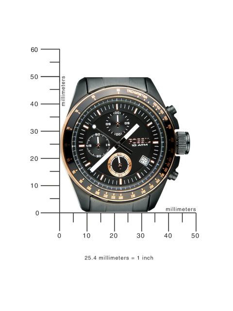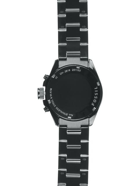 Case style: Analogue watch with a stainless steel circular case, has a fixed bezel with tachymeter markings, stainless steel back