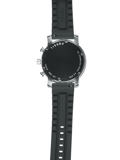 Strap style: Black rubber strap, secured with a tang clasp