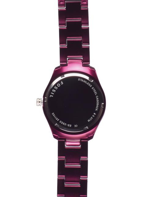 Strap style: Maroon aluminium bracelet-style strap, secured with a butterfly clasp