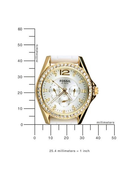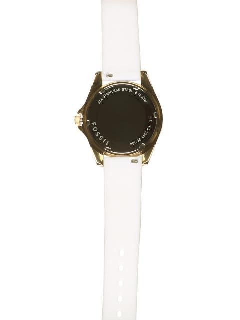 Strap style: White rubbernbsp;strap, secured with a tang clasp