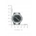 Stainless steel case with a fixed bezel and crystal embellishments with a black polycarbonate strap
