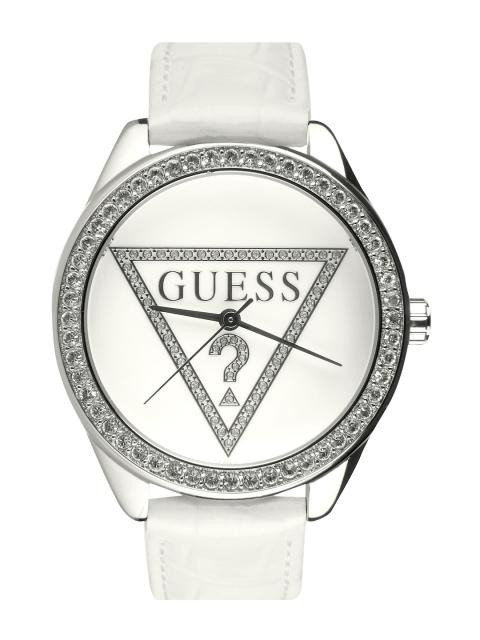 Guess Women Mini Triangle White Dial Watch with Swarovski Elements W65006L1