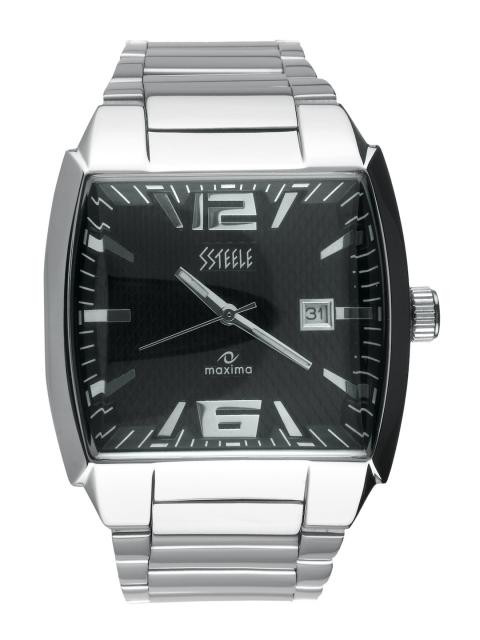 Black leather watch from maxima with classically minimalist styling and metallic numbers. Built with precision quartz movement for accuracy, this watch is as hard-wearing as it is stylish.