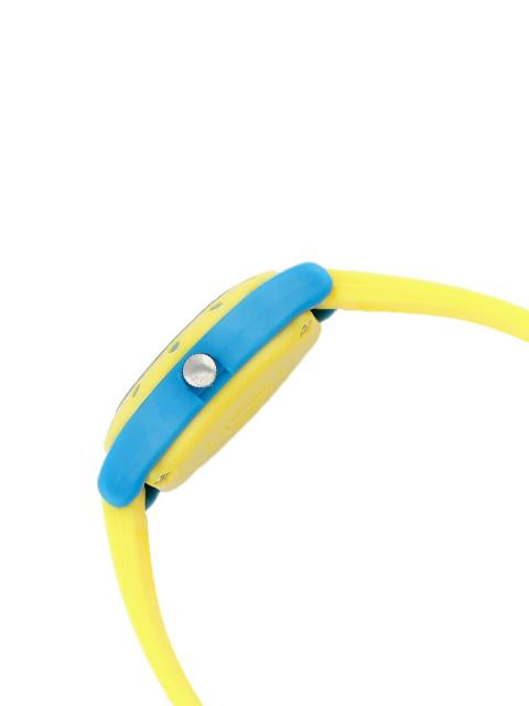 Dial style: Light blue and green dial with yellow hands and cartoon print on the dial