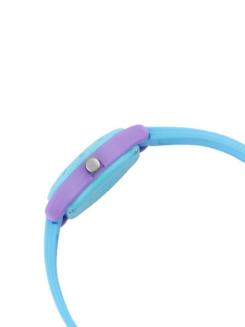 Dial style: Light blue and green dial with yellow hands and cartoon print on the dial