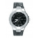 Tang clasp with a black dial with metallic numbers and metallic hands