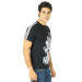 Black short sleeves round neck t-shirt made of 60% cotton, 40% polyester, softly ribbed neckline with fabric tape detailing on the inseam, adidas' three stripes appliqued on both sleeves in white, graphic print on the front, and brand tab appliqued at the hem