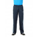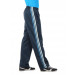 Full length navy blue track pants made of 100% polyster, adidas's signature three stripes along the sides in shades of blue, handy side pockets, comfortable elastic waist band with inner drawstring, brand name and logo printed on the left leg, and engineered with ClimaLite technology