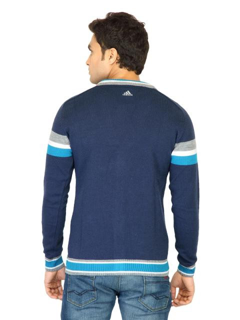 Update your casual style with this navy blue knit cardigan from adidas. The simple design is given strong brand appeal with the use of the iconic three stripes on the sleeves and the attached brand tab on the upper left chest, while the fabric keeps you feeling warm and comfortable all day. Team this pullover with jeans, tees and sneakers for a cool look.