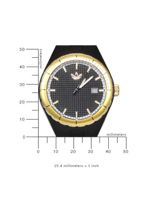 Upgrade to a cool, modern look with the adidas Cambridge analogue wrist watch. The polished silver-tone logo applique on the black dial and adds to it an absolute fashionable edge. A great casual accessory, it's a versatile watch for everyday wear.