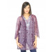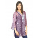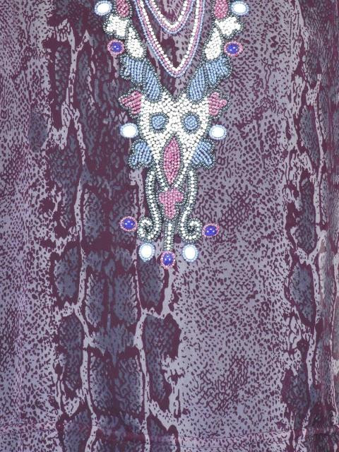 Purple kurti made of georgette, has a round keyhole neck with a hook closure, heavily beaded yoke, three-quarter sleeves with asymmetric cuffs, drop waist with drawstrings and a vented hem