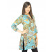 Blue printed kurta made of 100% cotton, has a mandrain collar with a V-neck, pin tucks running from the shoulders to the bust, three-quarter sleeves with lace and pin tuck detailing, and has a vented hem
