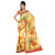 Patchwork skirt with floral printed panels and pink top stitch, lime green waistband and lace detail at hem, concealed zipper and button closure on left, inner lining