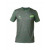 Green round neck T-shirt, made of 100% cotton, has short sleeves, rubber print on the front and brand tag on the hem