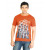 Orange and black printed striped top made of knitted 100% polyester, has a cowl neck, short sleeves and gathers from the neck at front and back