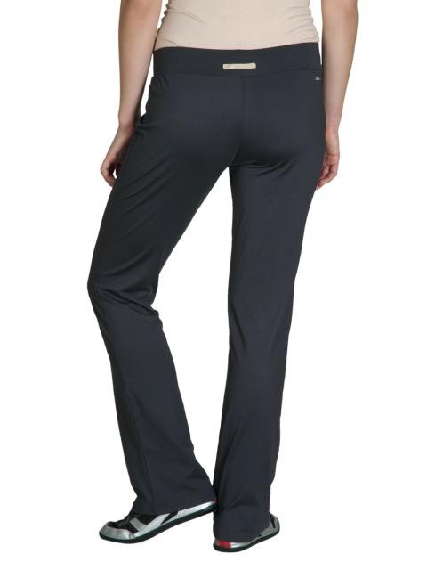 Charcoal colour track pants, broad elasticated waistband for comfort and embossed brand logo on the left below it, ClimaLite logo on the right and adifinty logo in the middle at the back