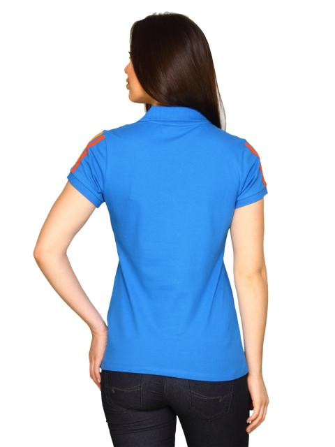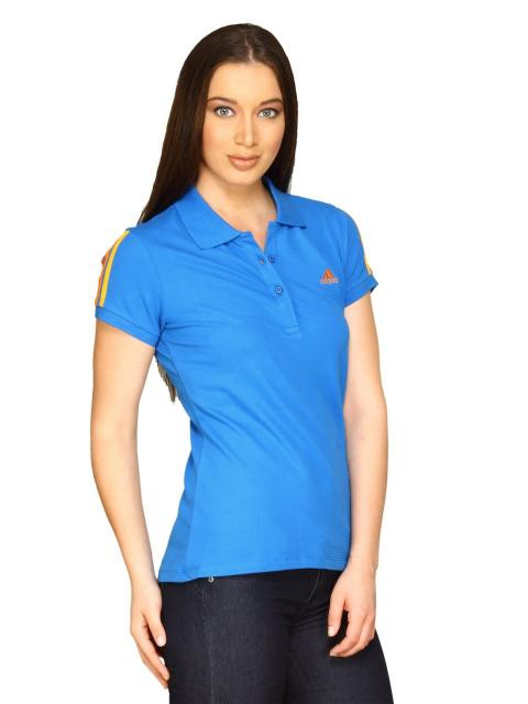 Look out for the colourful three patent stripes in different bright colours accentuating the blue t-shirt.