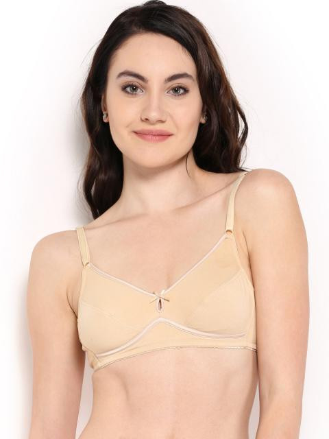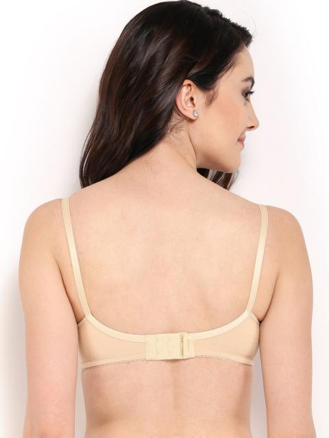 Nude-coloured full-coverage bra, has non-padded and non-wired cups, adjustable shoulder straps, hook-and-eye closures on the back