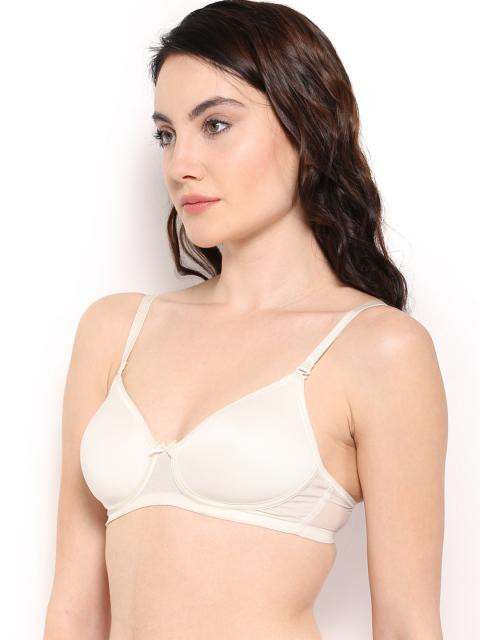 Off-white full-coverage bra, has seamless, lightly padded and non-wired cups, adjustable and detachable multiway shoulder straps, hook-and-eye closures on the back