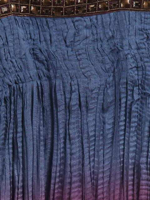 Strappy blue and purple ombre dyed kurta with stone work on the chest, smocked, crushed fabric all over and elastication at the back, brocade shoulder straps
